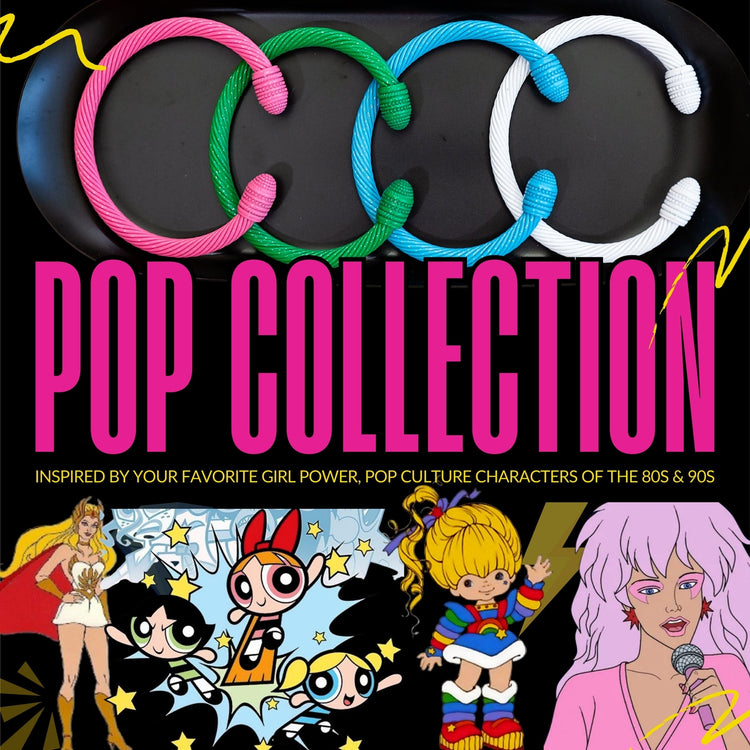 The POP Collection embraces bold color, playful styles, and a whimsical aesthetic that is reminiscent of 80s and 90s pop culture. These limited edition styles honor the animated powerhouse characters of our childhood, and encourage us to show up in the same bold, bright manner.
