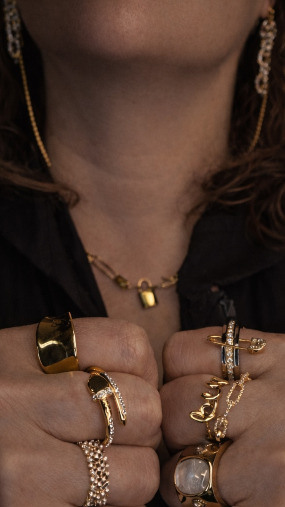 Simple forms meet fearless elements. Polished shine meets industrial texture. Feminine lines carry unapologetic weight.