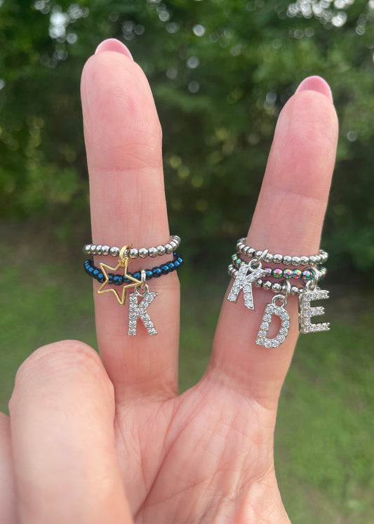 Initial Stretch Bead Ring in Blue | Pre-Order