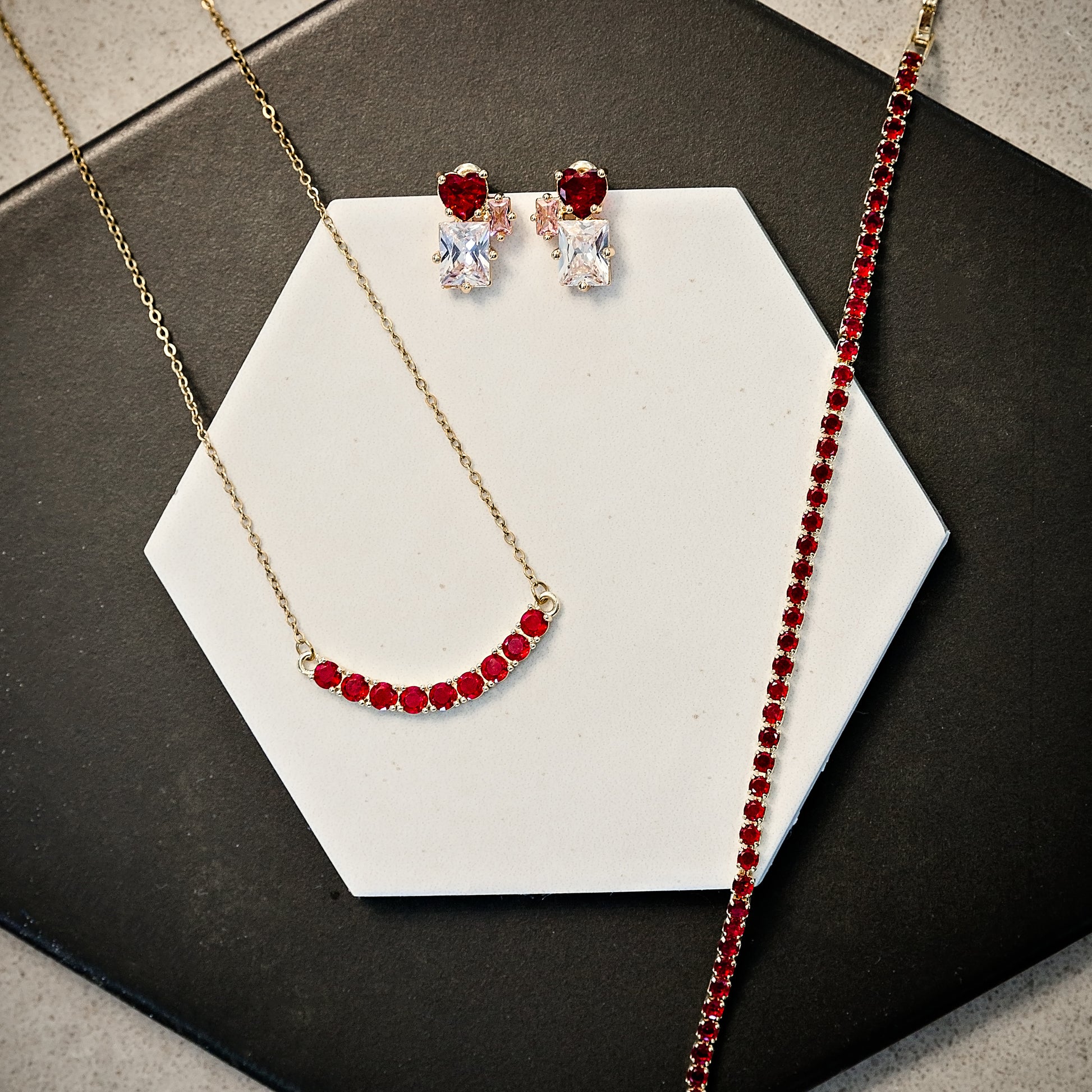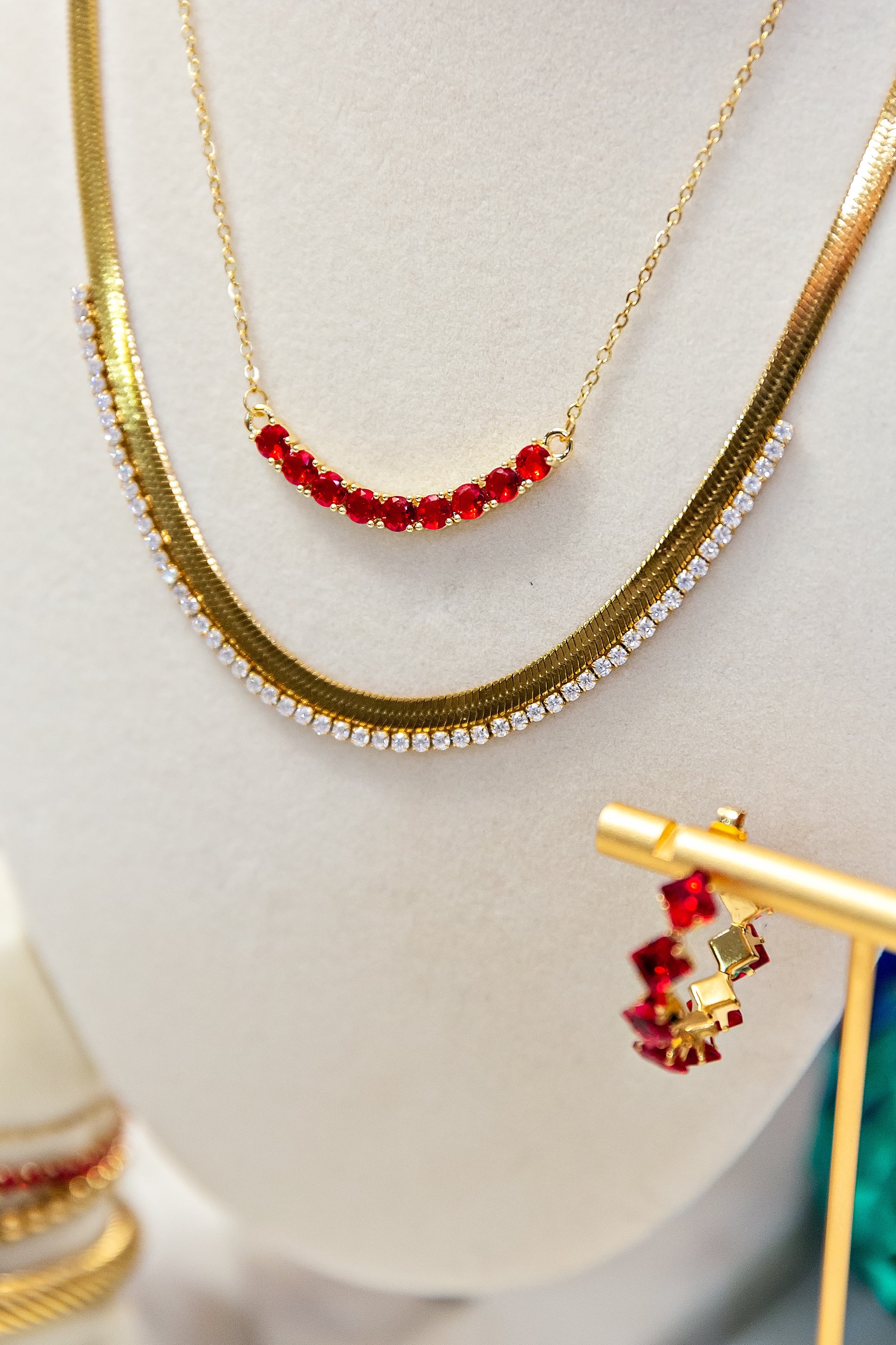 The Clara Necklace adds a pop of color and effortless shine to any outfit. With a curved bar of CZ stones on an 18kt gold-plated stainless steel chain, it’s lightweight, hypoallergenic, and made to wear year-round. Choose your color to match your favorite team, school spirit, special event, or personal style… Clara is the perfect finishing touch for every moment that matters.