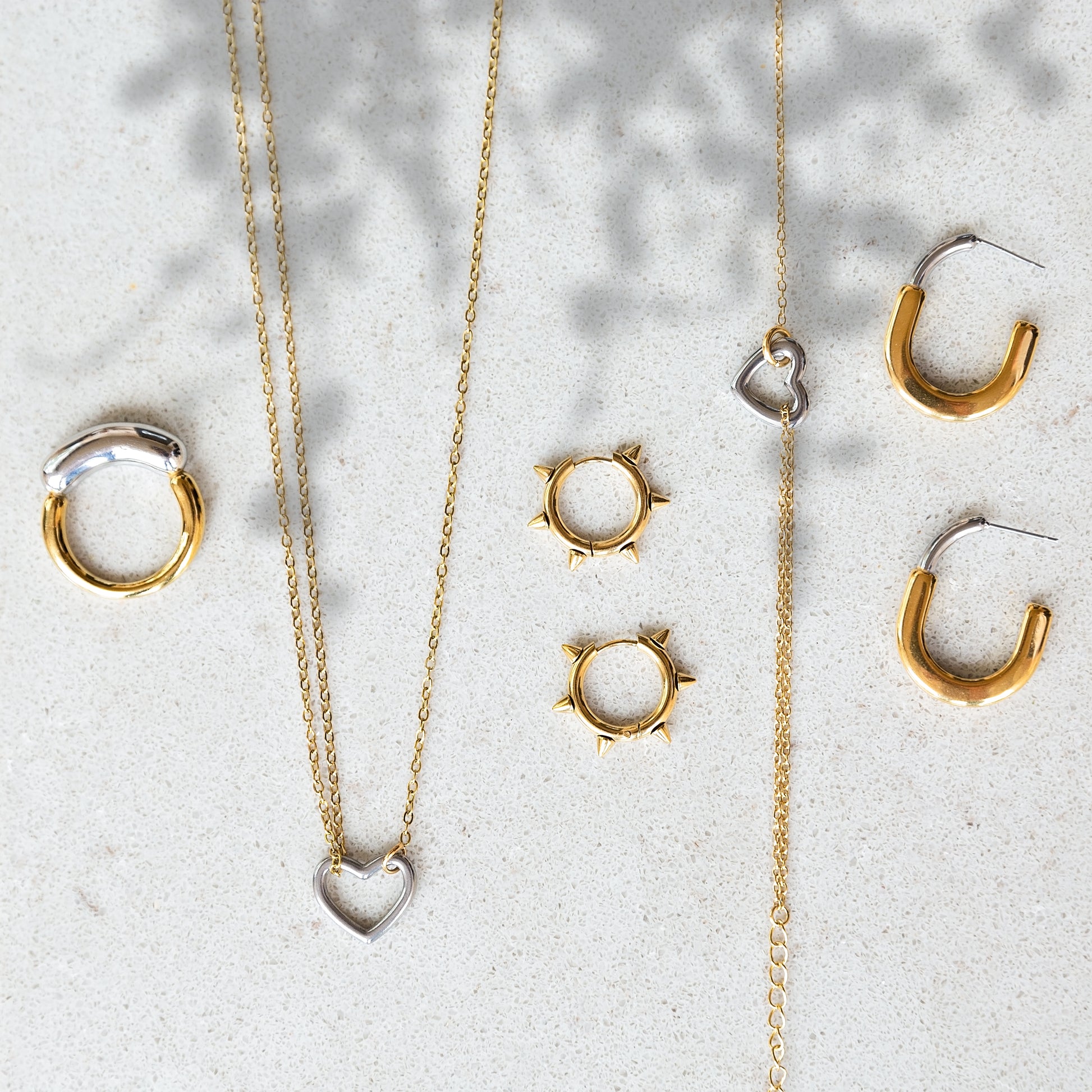 Elegant, classy, and timeless. The Elizabeth Bracelet is named after the Founder's friend Elizabeth, who is the epitome of loyal friend, confidant and class. This double chain necklace is a timeless jewelry piece featuring stainless steel with 18kt gold plating, mixed metals, and high polished heart design. Pair it with the matching Elizabeth Double Chain Heart Necklace!