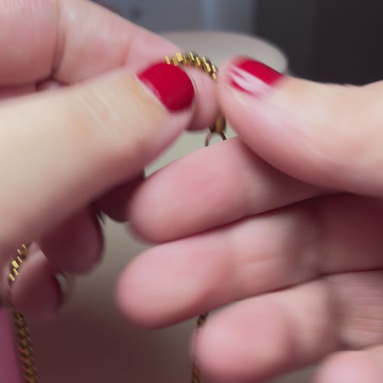 This darling necklace is sweet but it is a versatile piece that makes an impact. A slightly chunky box chain meets a delicate heart etched with the phrase "I Am Worthy." The heart is reversible, so you can wear it multiple ways! Made of durable stainless steel with 18kt gold plating. Water-resistant and tarnish-resistant. Measures 16-18" length.
