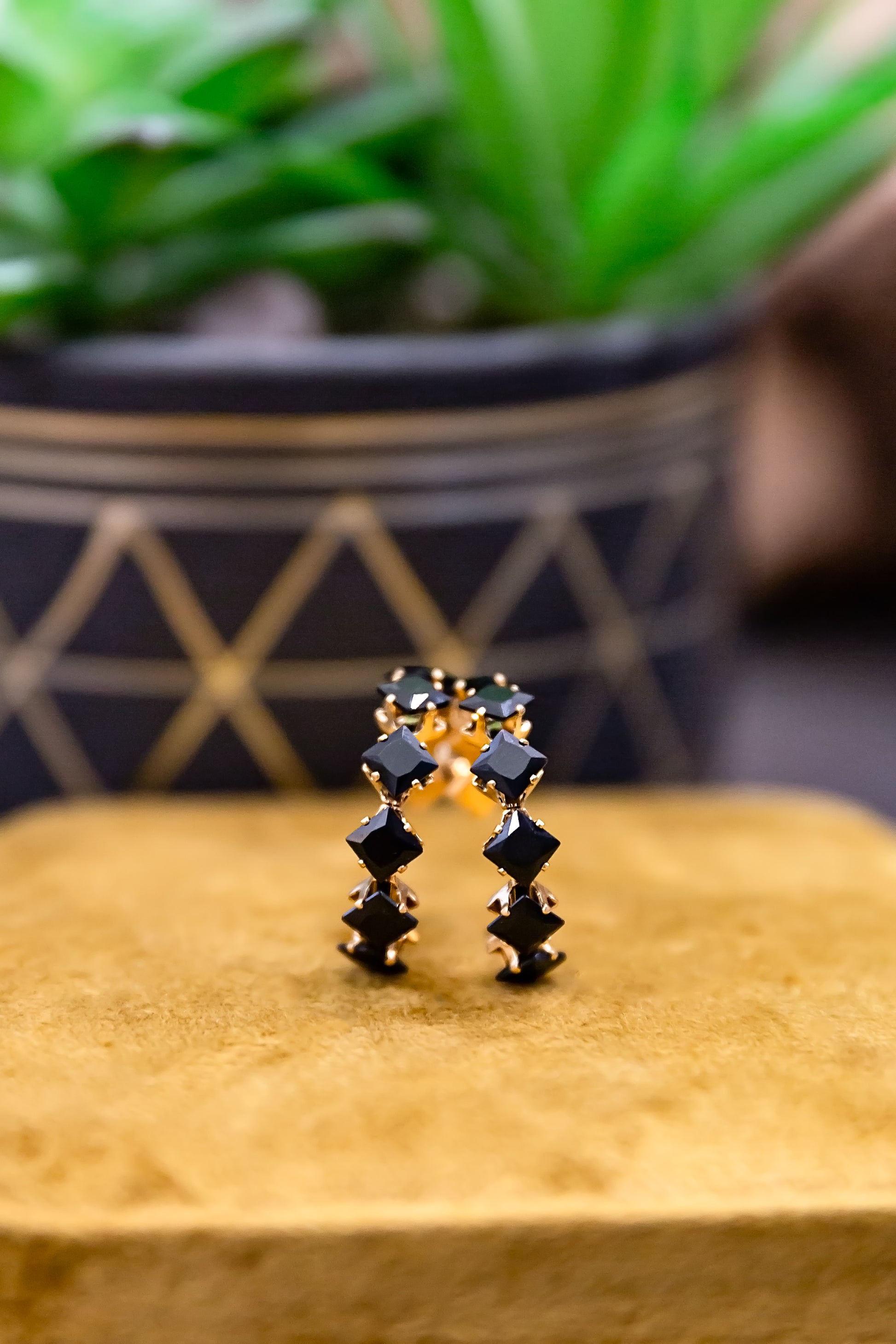 Named after our founder's friend Lesli, who wears a smile and lots of sparkle wherever she goes. These hoops are bound to make an impression! Features stainless steel base metal and 18kt gold plating with sparkling square cut cz stones in a four-prong setting. Choose gold or silver.