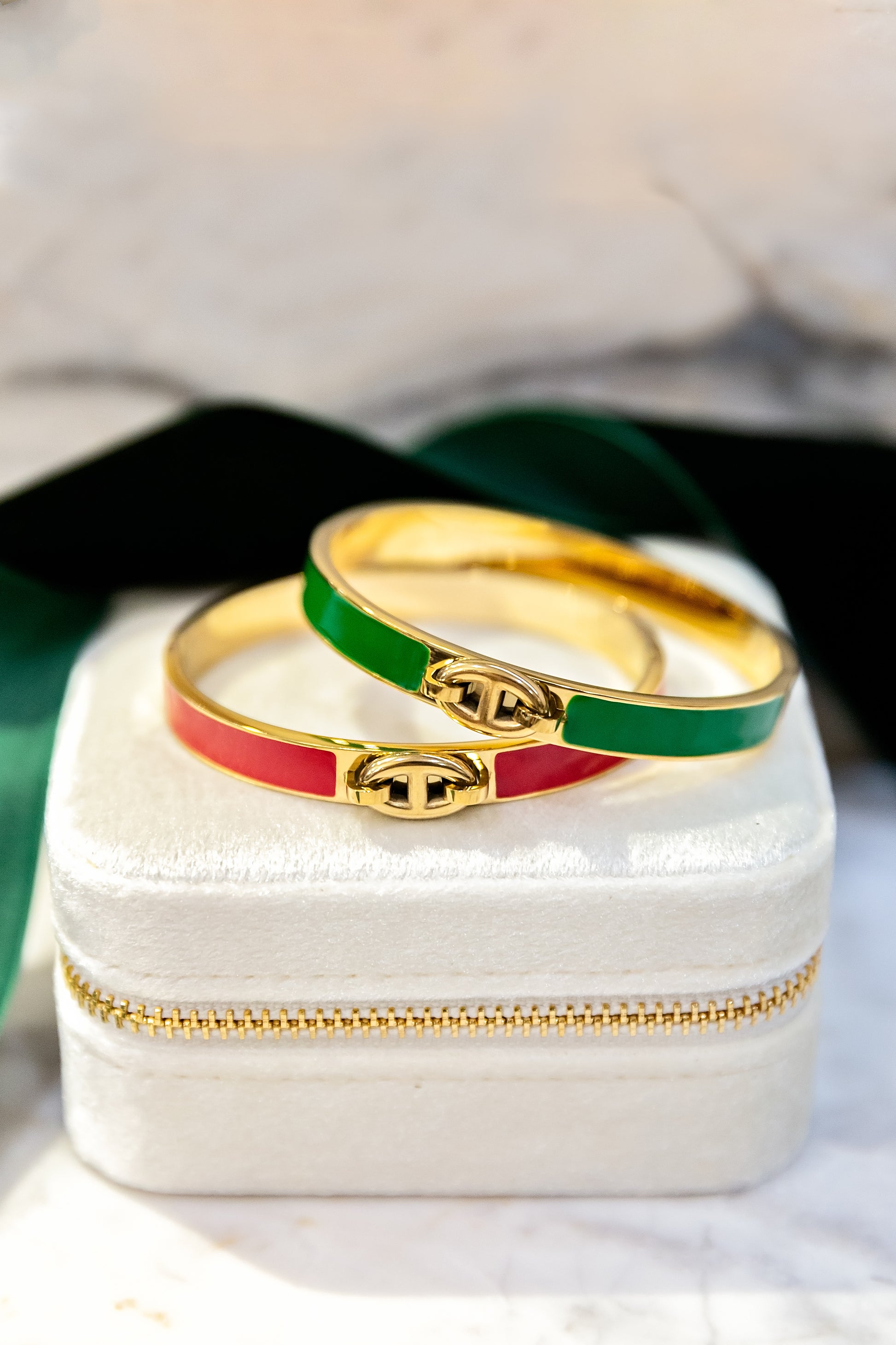 Our bestselling Trina Enamel Bangle gets a holiday makeover in rich, vibrant red and evergreen. Sleek, polished, and incredibly wearable, this piece adds a subtle pop of color while keeping that elevated, designer-inspired look that VEITA is known for.