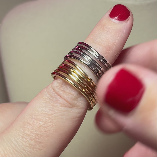 An organic shape meets designer-inspired design. This flattering and wearable ring makes a statement while still remaining classy and subtle. Choose from silver, gold or hematite. Available in whole sizes 6-11. A best seller!