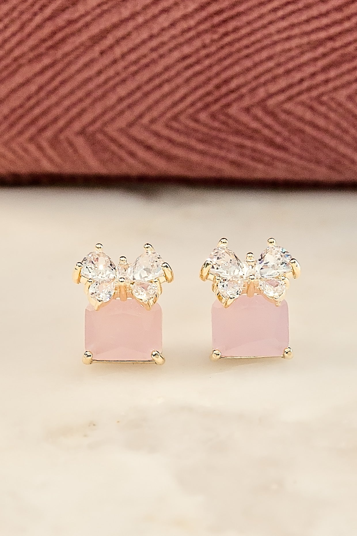 Unwrap the perfect gift... your inner light! Let yourself shine bright with these exquisite present stud earrings with an frosty, light pink glass stone and a bow detail with clear cz stones. Don't miss these, they are gorgeous! Limited quantities, while supplies last. Measure 0.6" long.