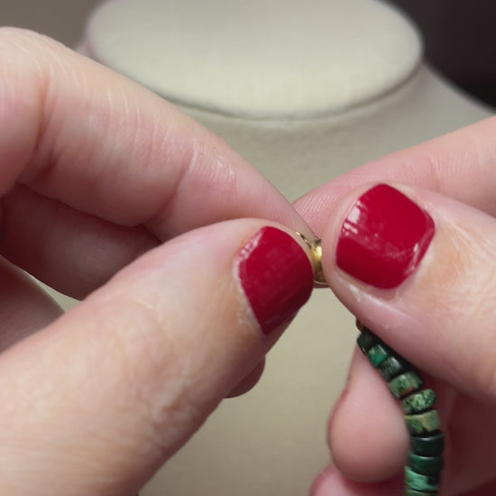 Perlina means "bead" in Italian, and this beaded choker-style necklace is a gorgeous layering piece for any age. Features genuine malachite beads and two freshwater pearls. Measures 16" long with magnetic closure.