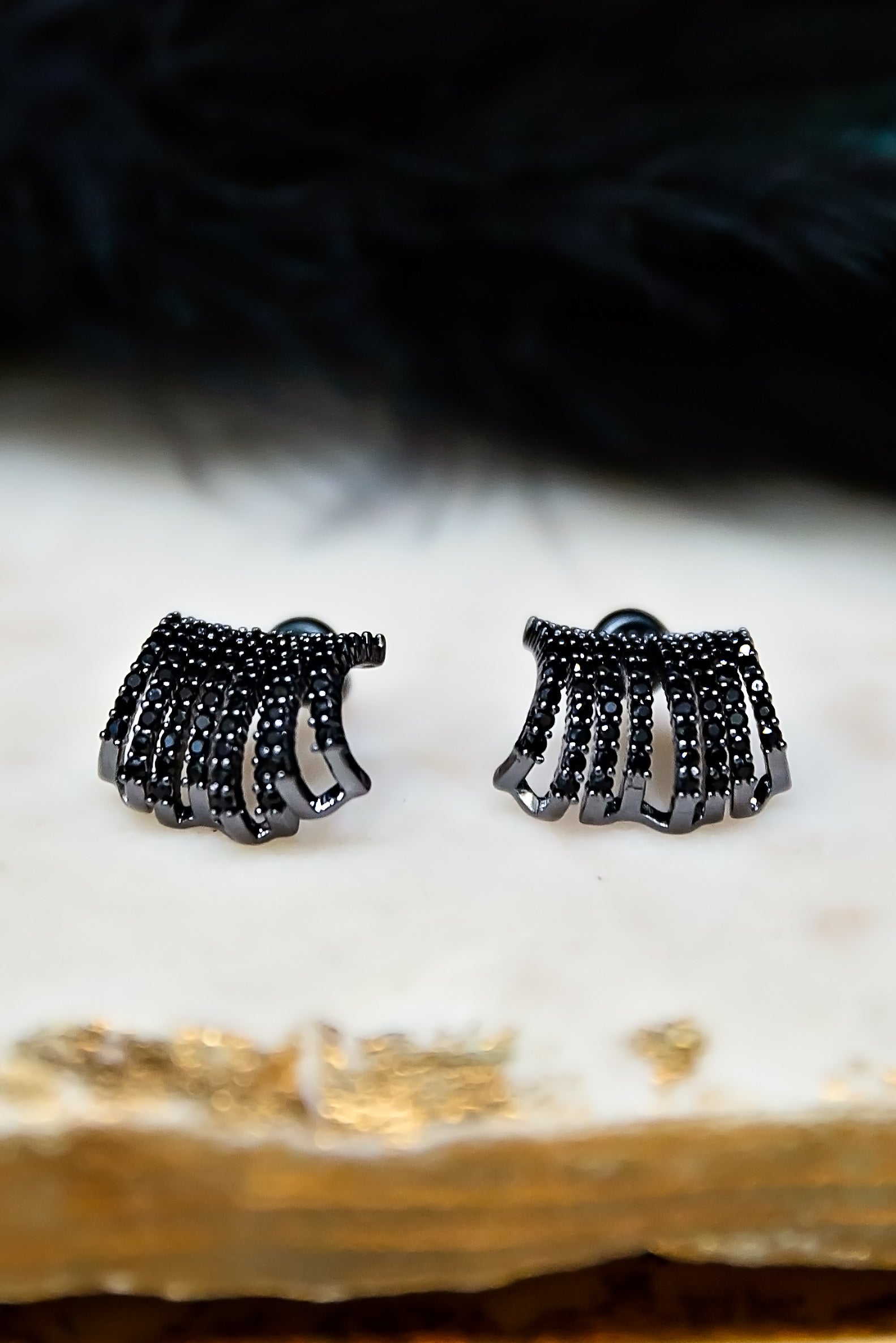 Quite sophistication meets unexpected hematite in these show-stopping Showgirl Earrings. Featuring jet black micro cz stones and 18kt hematite coating with a sterling silver earring post, these can go from the office to the stage without skipping a step.