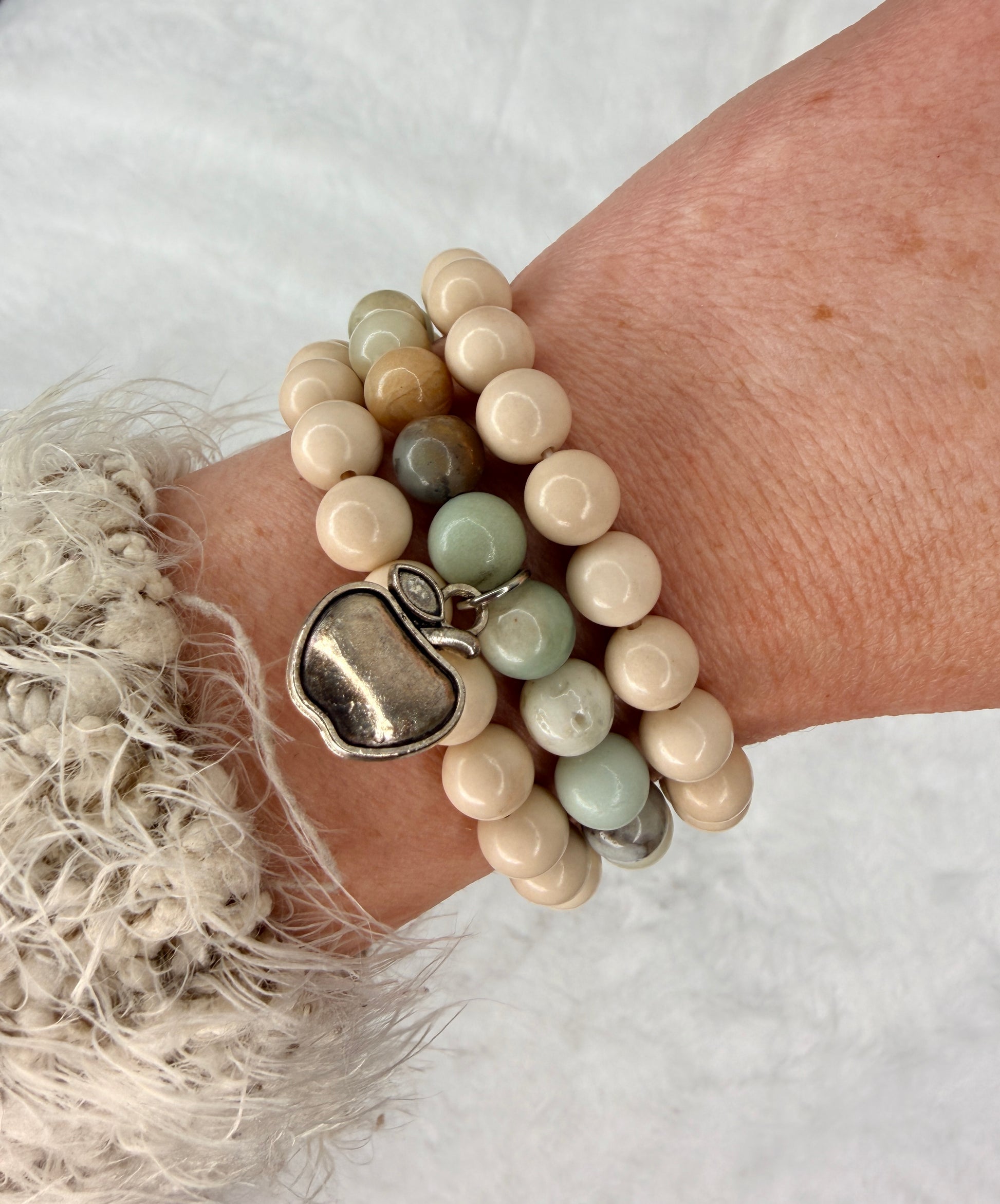 Any teacher in your life will appreciate this adorable stretch-to-fit bracelet featuring genuine amazonite stones and an adorable silver apple charm. This stretchy bracelet will fit most wrist sizes. Amazonite is a semi-precious gemstone believed to brings peace, healing, and promotes feelings of security.